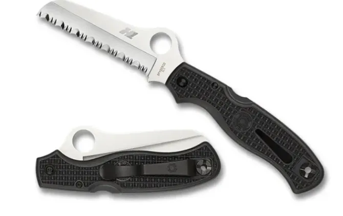 Spyderco’s Rescue knives are long favored by seafarers and the design has since been embraced by rescue workers, EMT’s and ranchers-anyone cutting around flesh in an emergency. The Atlantic Salt is a modified Rescue made with state-of-the-art, ultra-corrosion-resistant H-2 steel. The hollow-ground blade is available in SpyderEdge offering remarkable cutting performance in and around both fresh water and saltwater. The molded FRN handle includes a shackle key and is available in black or bright yellow and features a reversible black-coated titanium pocket clip for tip-up carry on either the left or right side. We recommend threading a thong or lanyard cord through the lanyard hole for back-up retention around water, where once dropped, a knife is often irretrievable or lost.