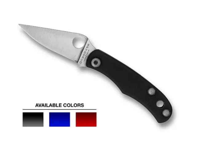 Spyderco’s micro-sized slipjoint pocketknives have always been much more than novelties. Despite their diminutive size, they are fully functional, impressively sharp, and, thanks to the Trademark Round Hole in their blades, far easier to open than knives with traditional nail nicks. Traditionally, the Bug, Honeybee, and Grasshopper have always been expressed with stainless steel handles, but now these popular designs are available with G-10 scales in a choice of three colors. The peel-plytextured scales provide an enhanced grip and come in black, red, and blue. All knives feature razor-sharp full-flatground blades crafted from Sandvik 12c27 stainless steel.