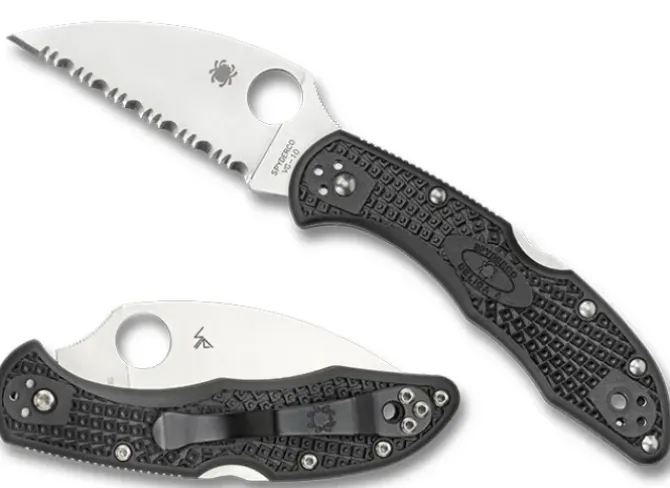 Available in either a PlainEdge™ or fully serrated SpyderEdge™ format, the Delica Wharncliffe features a full-flat-ground VG-10 stainless steel blade with a fully accessible Trademark Round Hole™ that supports one-hand opening with either hand. It is paired with the time-tested Delica Lightweight handle design, which includes a sturdy back lock mechanism, skeletonized stainless steel liners, and a four-position pocket clip that allows both left and right-side tip-up or tip-down carry.
