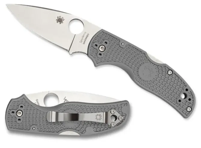 This knife’s full-flat-ground PlainEdge™ blade takes full advantage of Maxamet’s properties, offering a superior combination of strength, low-friction cutting performance, edge retention, and point utility. It is paired with a lightweight, gray, injection-molded fiberglass-reinforced-nylon (FRN) handle that features Bi-Directional Texturing™ for an exceptionally positive grip. The Native 5’s highly evolved back lock mechanism locks the blade securely in the open position and, together with the blade’s Trademark Round Hole™ and the handle’s versatile four-position pocket clip, make both the carry and operation of this extraordinary knife completely ambidextrous.