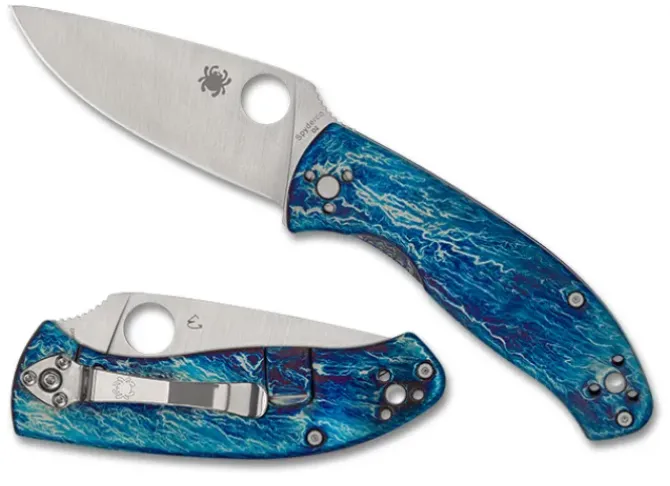 Spyderco’s best-selling Tenacious has earned iconic status as a folding knife design. Expressing it with titanium scales and a Reeve Integral Lock (R.I.L.) elevated it even further. This elite version takes this popular model to the next level with a blade crafted from high-performance D2 tool steel and a stunning Disarray finish on the scales. This proprietary heat-anodizing process is individually applied to each solid titanium scale to produce a breathtaking one-of-a-kind color pattern. The beautifully polished scales provide the structure for the knife’s sturdy R.I.L. mechanism, which includes a stainless steel interface/overtravel stop to ensure a long service life. The satinfinished, full-flat-ground blade maximizes D2’s outstanding edge retention and toughness and is complemented by the handle’s brightly finished hardware and polished four-position pocket clip.